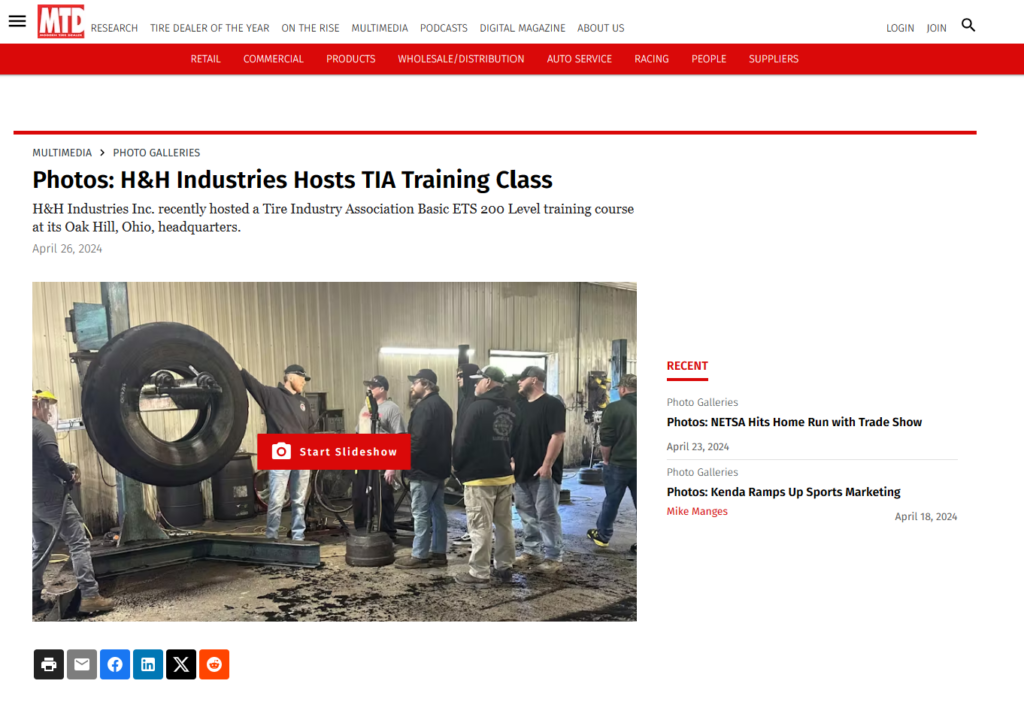 MTD April 18, 2024 – H&H Hosts TIA Training Class Photos: H&H Industries Hosts TIA Training Class | Modern Tire Dealer Noah Hickman2024-04-29T13:23:08+00:00April 29th, 2024| Share This Story, Choose Your Platform! FacebookTwitterRedditLinkedInWhatsAppTumblrPinterestVkEmail
